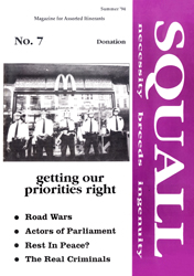 This focus no doubt sprung from the fact that SQUALL was produced by and for people whose ways of living happened to be directly targeted by this new legislation at the time: The strapline on early issues denotes its focus at this point - 'Magazine for squatters, travellers and assorted itinerants' - all key targets of sections of the CJA. Meanwhile SQUALL also wrote about the trials and tribulations of rural communities around the country - some squatted, some on owned land.